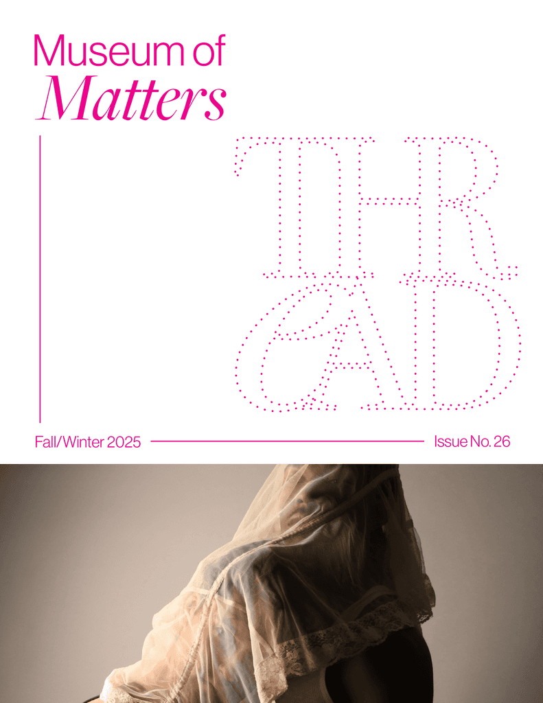 "Museum of Matters is my ode to materiality, to fabrics, to labor, to time. I could only make this issue “matter” more if I could print it on cotton paper, bind a leather cover to it, and package it in translucent plastic film. When you flip through the pages, you ache for a different fiber. Fashion, fiber, and flesh matter."